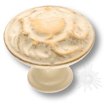 Ручка кнопка 15.352.01.20, материал Замак, отделка Золотая патина Золото Слоновая кость, 24*d=30 мм